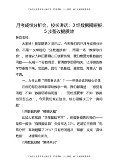 月考成绩分析会,校长讲话:3组数据揭短板,5步整改提质效.doc