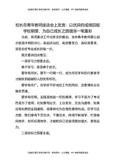 校长在青年教师座谈会上发言:以优异的成绩回报学校期望,为自己成长之路增添一笔重彩.docx