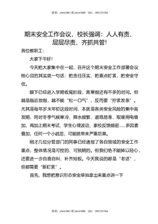 期末安全工作会议,校长强调:人人有责,层层尽责,齐抓共管!.doc