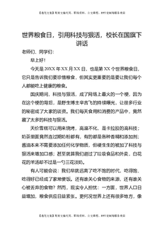 世界粮食日,引用科技与狠活,校长在国旗下讲话.doc