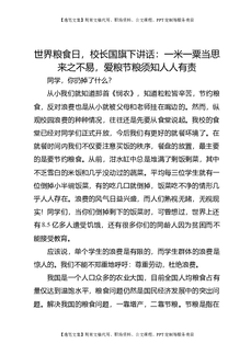 世界粮食日,校长国旗下讲话一米一粟当思来之不易,爱粮节粮须知人人有责.doc