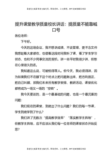 提升课堂教学质量校长讲话:提质量不能靠喊口号.doc