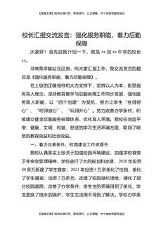 校长汇报交流发言:强化服务职能,着力后勤保障.docx