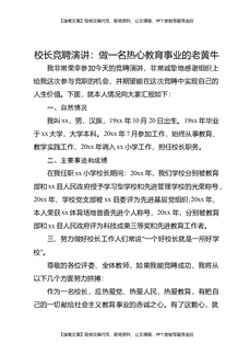 校长竞聘演讲:做一名热心教育事业的老黄牛.docx