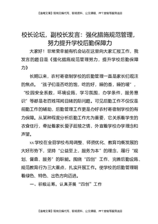 校长论坛,副校长发言:强化措施规范管理,努力提升学校后勤保障力.docx