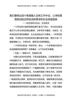 校长领导力论坛,交流发言:我们要将这四个维度融入日常工作中去,让学校管理更加贴近师生实际需求和社会发展趋势.docx