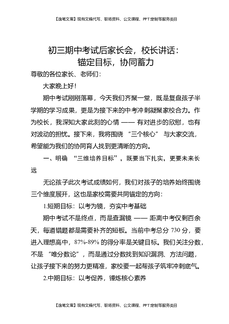 初三期中考试后家长会,校长讲话:锚定目标,协同蓄力.docx
