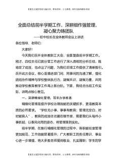 初中校长在全体教师会议上讲话:全面总结前半学期工作,深耕细作强管理,凝心聚力铸团队.doc