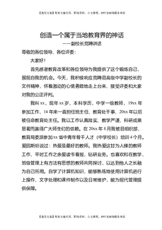 副校长竞聘讲话:创造一个属于当地教育界的神话.doc