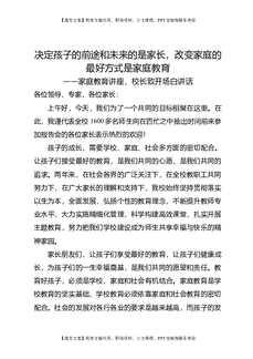 家庭教育讲座,校长致开场白讲话:决定孩子的前途和未来的是家长,改变家庭的最好方式是家庭教育.doc