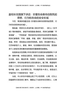 副校长在国旗下讲话:珍爱生命善待自我筑起思想、行为和生命的安全长城.docx