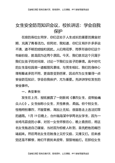 女生安全防范知识会议,校长讲话:学会自我保护.docx