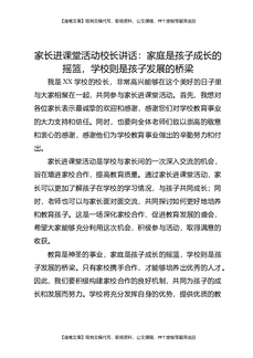 家长进课堂活动校长讲话:家庭是孩子成长的摇篮,学校则是孩子发展的桥梁.docx