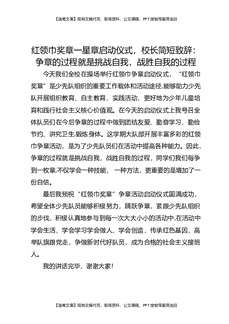 红领巾奖章一星章启动仪式,校长简短致辞:争章的过程就是挑战自我,战胜自我的过程.docx