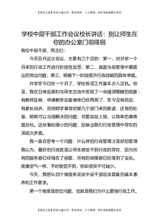 学校中层干部工作会议校长讲话:别让师生在你的办公室门前徘徊.doc