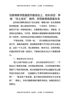 在教育教学质量提升推进会上,校长讲话:争做“向上生长”教师,共筑教育高质量未来.docx