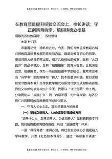 在教育质量提升经验交流会上,校长讲话:守正创新育桃李,培根铸魂立根基.doc