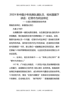 202X年中国少年先锋队建队日,校长国旗下讲话:红领巾为何这样红——从星火到朝阳的信仰传承.doc