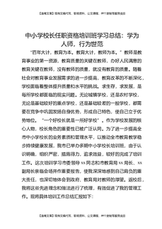 中小学校长任职资格培训班学习总结:学为人师,行为世范.docx