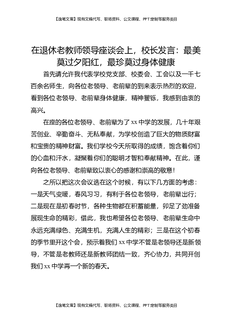在退休老教师领导座谈会上,校长发言:最美莫过夕阳红,最珍莫过身体健康.docx