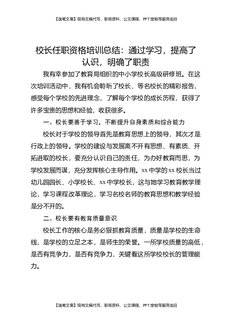 校长任职资格培训总结:通过学习,提高了认识,明确了职责.docx