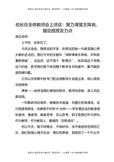 校长在全体教师会上讲话:聚力课堂主阵地,锚定提质发力点.doc