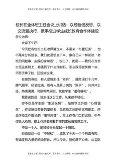 校长在全体班主任会议上讲话:以经验促反思,以交流强执行,携手推进学生成长教育合作体建设.doc