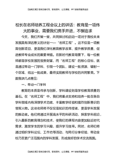 校长在名师培养工程会议上的讲话:教育是一项伟大的事业,需要我们携手并进,不懈追求.docx