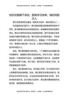 校长在国旗下讲话:提高学习效率,做时间的主人.docx