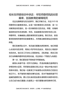 校长在师德培训中讲话:书写师德师风的壮丽篇章,创造教育的璀璨明天.docx