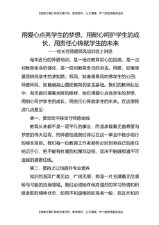 校长在师德师风培训会上讲话:用爱心点亮学生的梦想,用耐心呵护学生的成长,用责任心铸就学生的未来.docx
