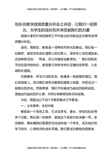 校长在教学成绩质量分析会上讲话:让我们一起努力,为学生的成长和未来贡献我们的力量.docx