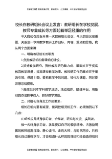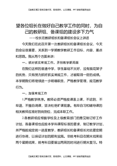 校长在教研组长和备课组长会议上讲话:望各位组长在做好自己教学工作的同时,为自己的教研组、备课组的建设多下力气.docx