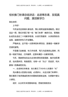 校长推门听课总结讲话:走进常态课、发现真问题、激活教学力.doc