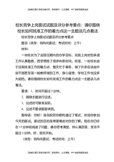 校长竞争上岗面试试题及评分参考要点:请你围绕校长如何找准工作的着力点这一主题谈几点看法.docx
