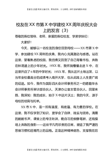 校友在XX市第X中学建校XX周年庆祝大会上的发言 (3).docx