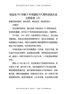 校友在XX市第X中学建校XX周年庆祝大会上的发言 (2).docx