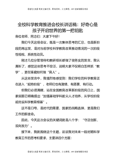 全校科学教育推进会校长讲话稿:好奇心是孩子开启世界的第一把钥匙.doc