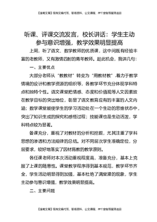听课、评课交流发言,校长讲话:学生主动参与意识增强,教学效果明显提高.docx