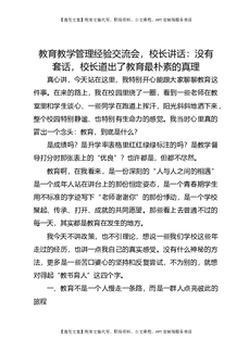 教育教学管理经验交流会,校长讲话:没有套话,校长道出了教育最朴素的真理.doc