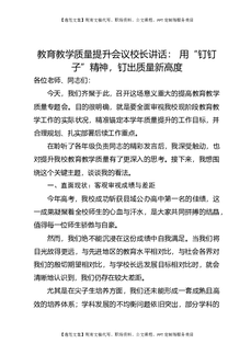 教育教学质量提升会议校长讲话:用“钉钉子”精神,钉出质量新高度.doc