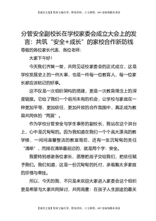 分管安全副校长在学校家委会成立大会上的发言:共筑“安全成长”的家校合作新防线.doc
