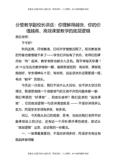 分管教学副校长讲话:你理解得越快,你的价值越高,高效课堂教学的底层逻辑.doc