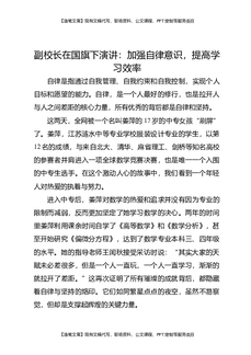 副校长在国旗下演讲:加强自律意识,提高学习效率.docx