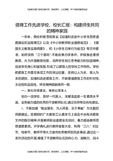 德育工作先进学校,校长汇报:构建师生共同的精神家园.docx