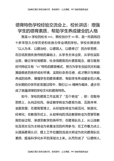 德育特色学校经验交流会上,校长讲话:增强学生的德育素质,帮助学生养成健全的人格.docx