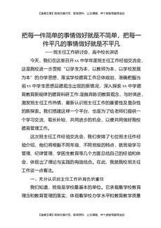 班主任工作研讨会,高中校长讲话:把每一件简单的事情做好就是不简单,把每一件平凡的事情做好就是不平凡.docx
