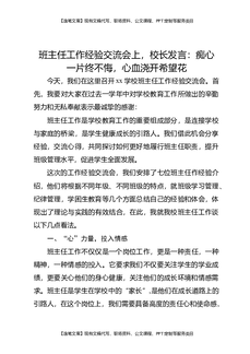班主任工作经验交流会上,校长发言:痴心一片终不悔,心血浇开希望花.docx