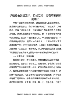 学校特色创建工作,校长汇报:走在不断探索的路上.docx