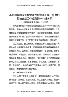 学校食堂工作会议,校长讲话:不断加强和改进食堂建设和管理工作,努力把我校食堂工作提高到一个新水平.docx